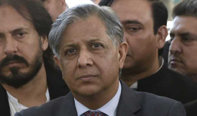 Law Minister Azam Nazeer Tarar speaks to media outside the Supreme Court in Islamabad, Pakistan, on April 4, 2023. (AP/File)