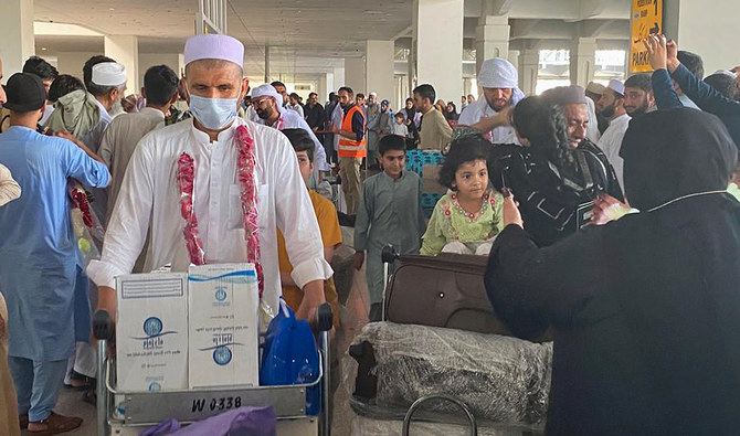 Pakistani Hajj pilgrims arrive from Jeddah at the Islamabad International Airport in Islamabad on July 2, 2023, as Pakistan begins its post-Hajj flight operation. (AN Photo)