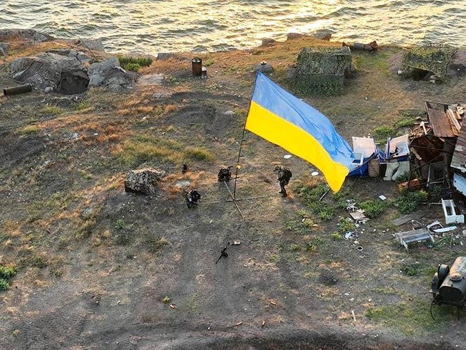 “Today we are on Snake Island, which will never be conquered by the occupiers, like the whole of Ukraine, because we are the country of the brave,” he said in a video clip released on social media Saturday.