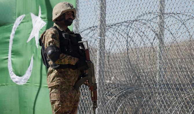 A Pakistani soldier keeps vigil next to a newly fenced border fencing along with Afghan's Paktika province border in Angoor Adda in Pakistan's South Waziristan tribal agency on October 18, 2017. (AFP/File)