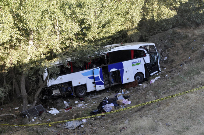 ANKARA: A passenger bus veered off the road and crashed into a roadside ditch in central Turkiye on Monday, killing 12 people and injuring 19 others, officials said.