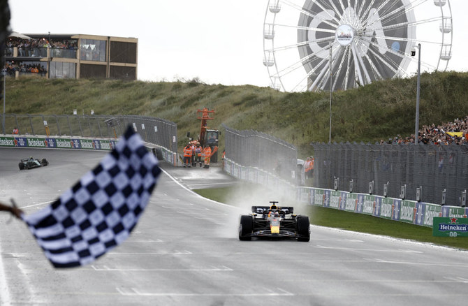 ZANDVOORT, Netherlands: Runaway Formula One leader Max Verstappen won a rain-marred Dutch Grand Prix on Sunday to equal Sebastian Vettel’s F1 record of nine straight victories, and increased his huge championship lead to 138 points as he races toward a third straight world title.