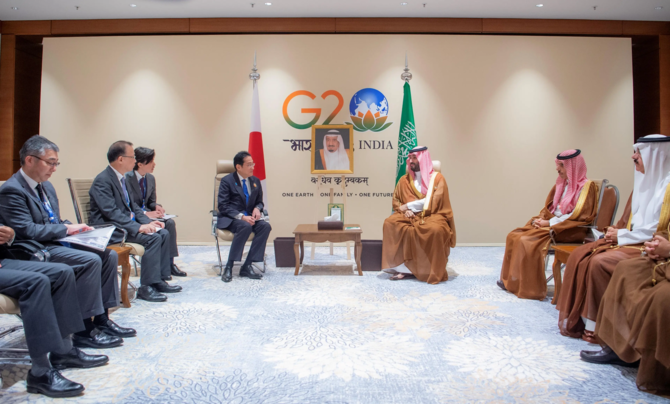 RIYADH: Saudi Arabia’s Crown Prince Mohammed bin Salman, who is heading the Kingdom’s delegation at the G20 leaders’ summit, met with Japanese Prime Minister Fumio Kishida in New Delhi, India, on Saturday, the Saudi Press Agency reported.