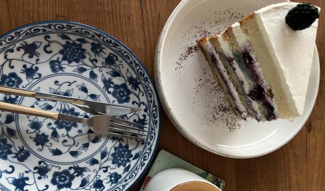 A choice of desserts includes blueberry cake, which goes down well with a cappuccino.