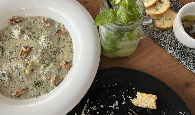 Popular with evening customers is the Caesar salad presented in an edible tortilla bowl. A lemon with mint mojito mocktail is a recommended accompaniment.