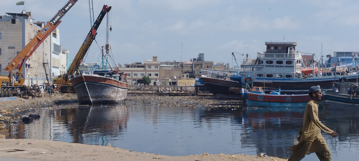 This is the Karachi Boat Building Yard, the largest in the country but facing an almost 90 percent decline in business in the last five years that builders and contractors attribute to a diminishing demand for new cargo and fishing boats, a decline in the fisheries sector and a rising cost of raw materials.