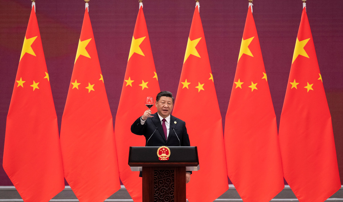 Chinese President Xi Jinping raises his glass and proposes a toast during the welcome banquet for visiting leaders attending the Belt and Road Forum at the Great Hall of the People, on April 26, 2019. (AP/File)