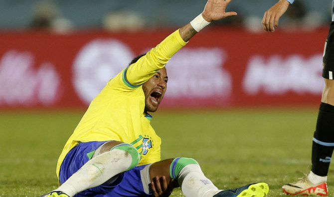 MONTEVIDEO, Uruguay: Neymar was in tears as he left the field with an apparent knee injury at the end of the first half of Brazil’s World Cup qualifying match at Uruguay on Tuesday.