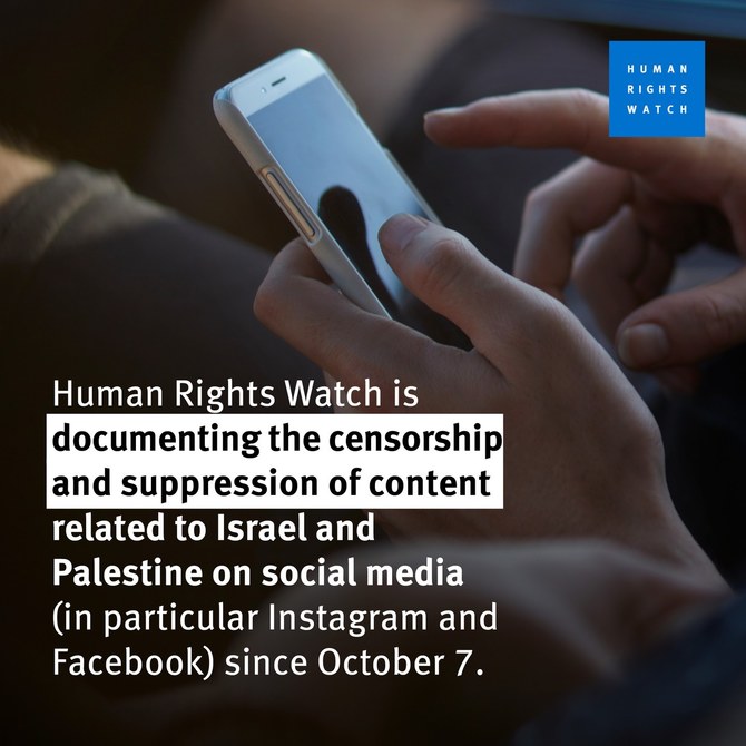 LONDON: Human Rights Watch is urging people to document and report online censorship related to the Israel-Palestine conflict, the organization said in an Instagram post on Tuesday.