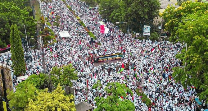 JAKARTA:Thousands of Indonesian protesters turned out for a peaceful march in solidarity with Palestine on Sunday, as they called for a permanent ceasefire in Gaza.