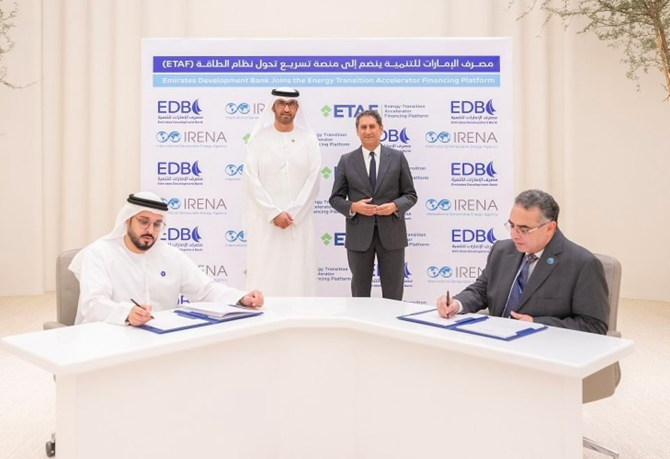 This announcement came as the Emirates Development Bank and the International Renewable Energy Agency signed a collaborative partnership agreement.