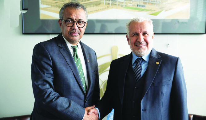 GENEVA: Dr. Abdullah Al-Rabeeah, supervisor-general of the Saudi aid agency KSrelief and advisor to the Royal Court, met with Director-General of the World Health Organization Tedros Adhanom Ghebreyesus on the sidelines of the Second Global Refugee Forum held in Geneva, Switzerland.