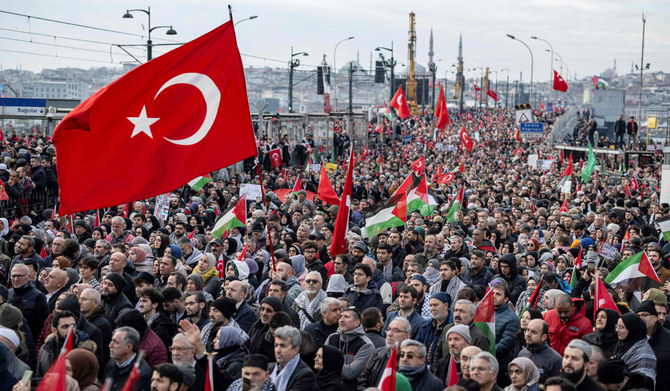ISTANBUL: Tens of thousands marched in Istanbul Monday to protest “murderer” Israel’s war in Gaza and the killing of Turkish soldiers by outlawed Kurdish militants in Iraq.
