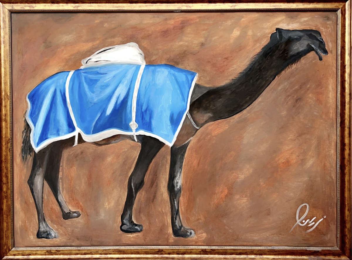 Each of her oil-on-canvas pieces, usually commissioned by clients, can take up to five days to complete. “My artwork highlight the characteristics of both the camel and the camel festival,” she said.