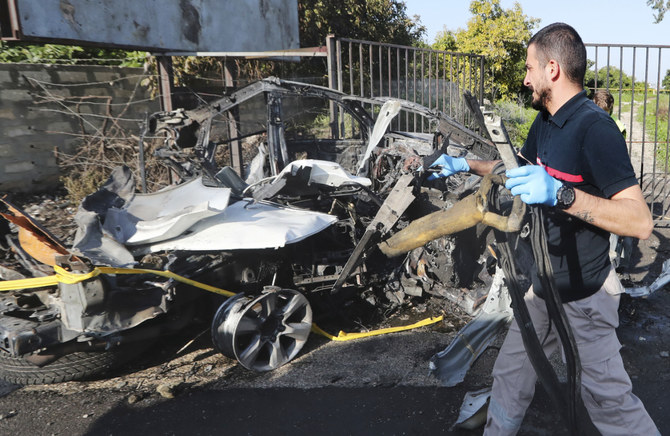 BEIRUT: Two people were killed on Saturday in southern Lebanon in an Israeli airstrike that hit their vehicle on the Burj Al-Chamali road in the village of Al-Bazourieh.
