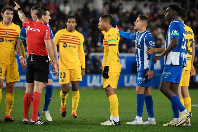 VITORIA, Spain: Barcelona earned a 3-1 win at Alaves in La Liga on Saturday with Brazilian teenager Vitor Roque scoring and then sent off in a lively appearance off the bench.