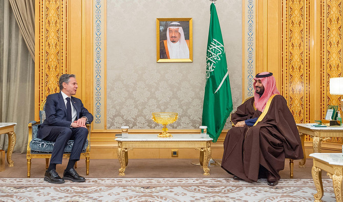 RIYADH: Saudi Arabia’s Crown Prince Mohammed bin Salman met with US Secretary of State Antony Blinken in Riyadh on Monday, Saudi Press Agency reported.