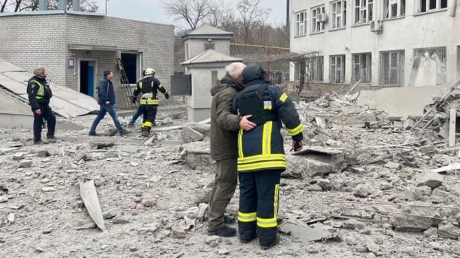 “The premises of the school, the central city hospital, the regional emergency medical care center, and the water utility were damaged,” it said on Facebook.