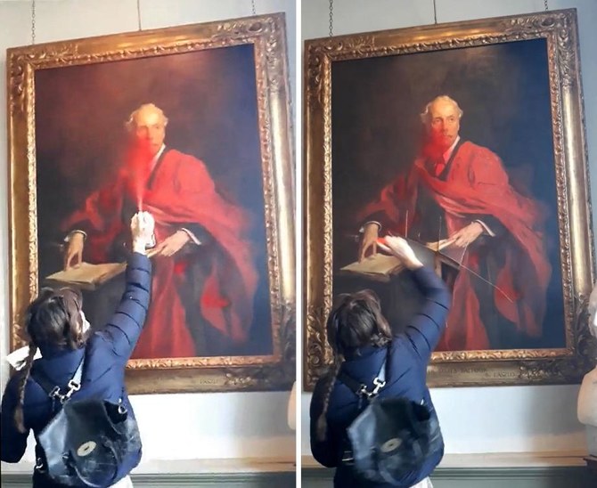 LONDON: A pro-Palestinian activist slashed a painting of the early 20th-century British foreign minister Arthur Balfour at Cambridge University on Friday, saying his 1917 declaration was the reason the Palestinians had lost their homeland to Israel.