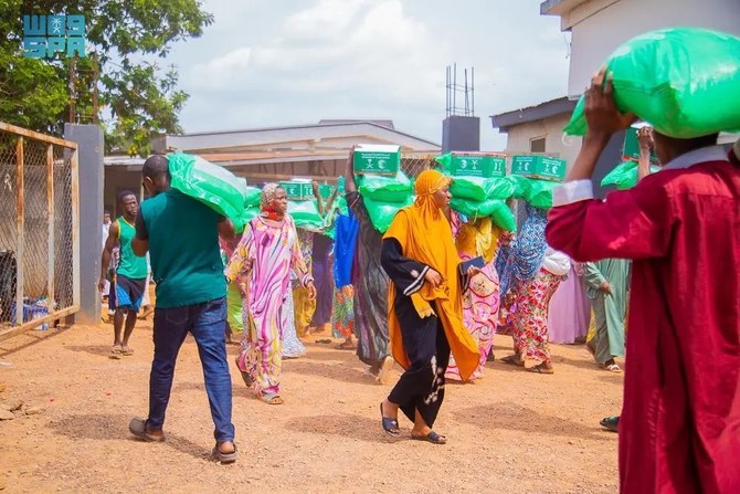 In Ghana, KSrelief aims to eventually distribute 5,300 food baskets, each weighing 59.8 kg, for 31,800 people in five cities.