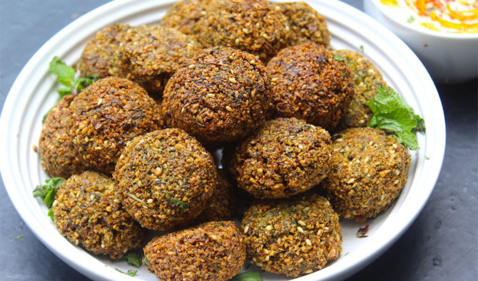Falafel is a popular dish in the Middle East that can be a side dish or the main course. It is also treated as fast food, made of a mixture of chickpeas, fresh and dried herbs, and spices.