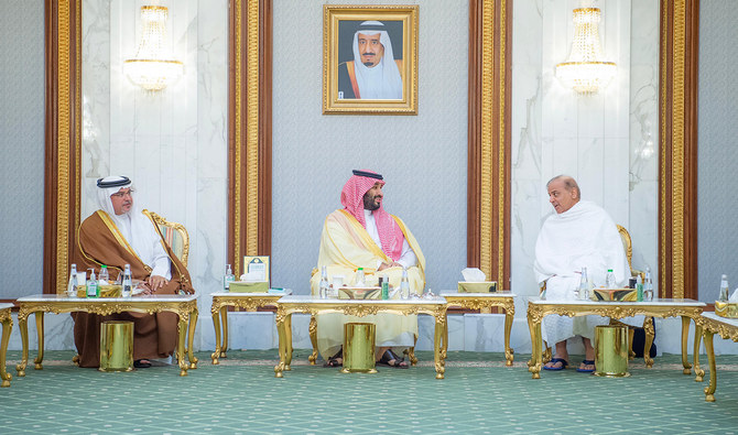 Sharif arrived in Saudi Arabia on a three-day official visit on Saturday, his first foreign trip as Pakistan’s chief executive since his election to the post last month. He was accompanied by his niece and Punjab chief minister, Maryam Nawaz Sharif, as well as the ministers of finance, foreign affairs, economic affairs, defense and information. The Pakistani premier and his delegation were also invited to an iftar by the Saudi crown prince.