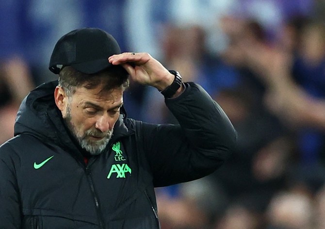 LIVERPOOL, England: Jurgen Klopp’s hopes of a dream send-off were left in tatters after a 2-0 loss at Everton dealt a major blow to Liverpool’s Premier League title bid on Wednesday.