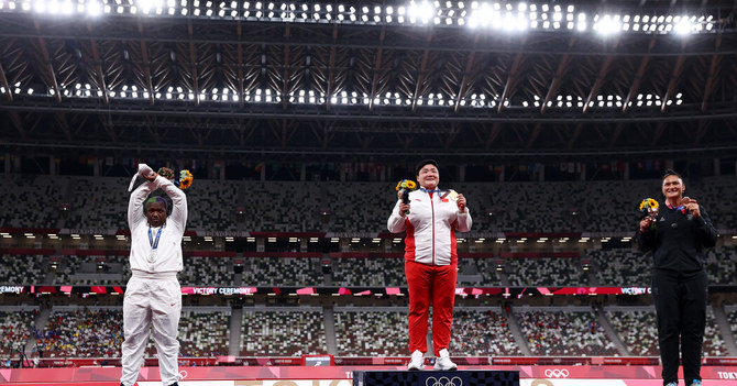 The crossed hands gesture was made on a medal podium at the Tokyo Olympics in 2021 by United States athlete Raven Saunders who won silver in women’s shot put.