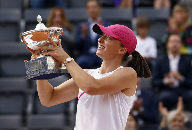 ROME: Iga Swiatek won the Rome Open on Saturday after sweeping aside Aryna Sabalenka 6-2, 6-3 in the final to claim her third Foro Italico title.