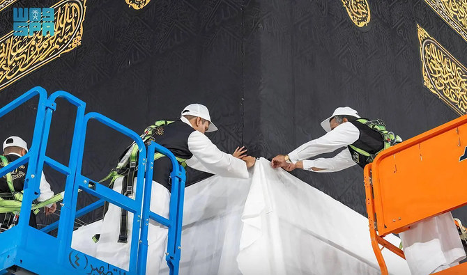 RIYADH: In keeping with the annual tradition, officials raised the lower part of the kiswa — the elaborately designed black cloth covering the Kaaba — in Makkah on Wednesday ahead of this year’s Hajj pilgrimage.
