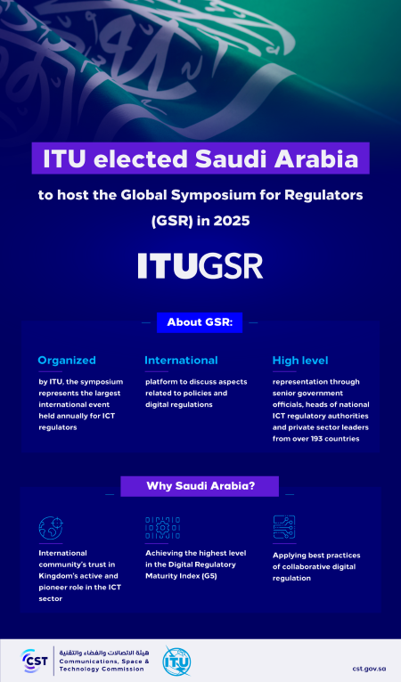 Confirming the announcement, the CST said: “The ITU selected Saudi Arabia, represented by the Communications, Space and Technology Commission, to host the upcoming GSR 2025 in Riyadh.