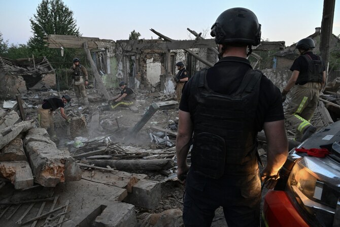 It added emergency services were working on the site of the fire that occurred overnight “during air raid alerts.”