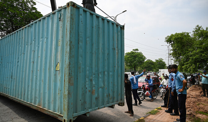 The administration put up shipping containers to block roads leading toward government buildings in Islamabad as well as on entry and exit points into the city as the Supreme Court heard a plea by the Punjab government asking it to ‘correct’ a verdict in a blasphemy case concerning Mubarak Sani, a member of the minority Ahmadi community, who was given bail by Chief Justice Qazi Faez Isa earlier this year.