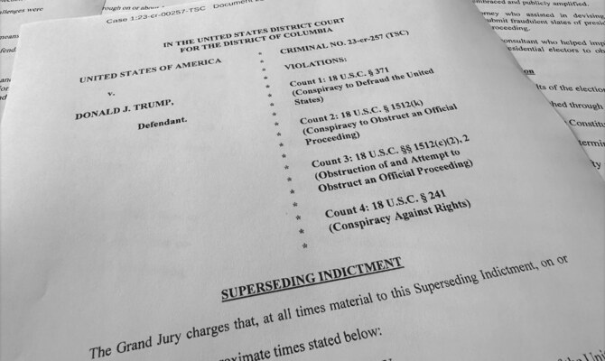The superseding indictment retains the same four charges against Trump as in an earlier version but takes into account a recent Supreme Court ruling that a former president has broad immunity from criminal prosecution.