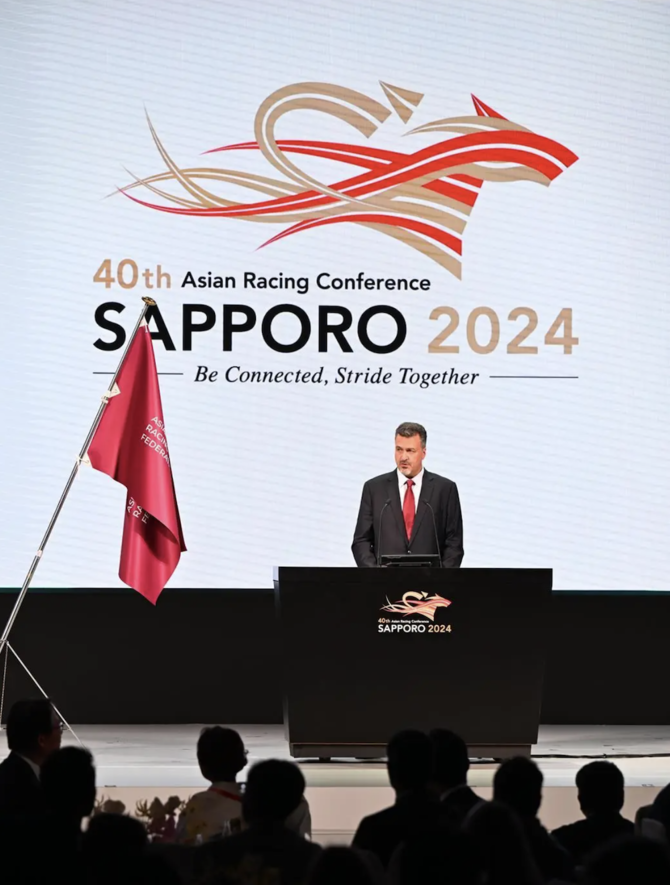 The Jockey Club of Saudi Arabia received the flag from the Japan Racing Association during the 40th conference, which is being held in Sapporo until Sunday.