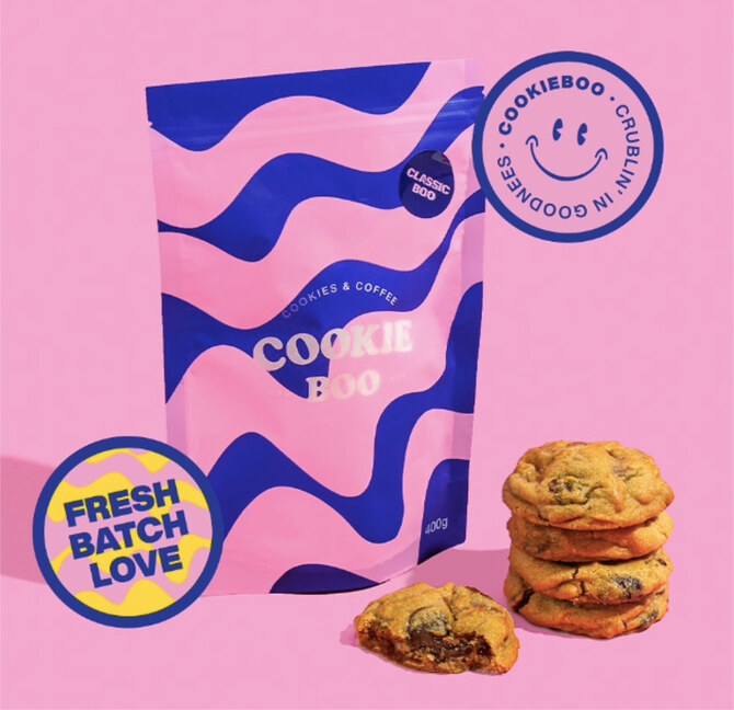 Cookie Boo also sells matcha powder, tote bags and T-shirts featuring their funky cookie mascot and other fun designs.