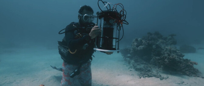 KAUST scientist testing the Coral-AI in the Red Sea. (KAUST photo)