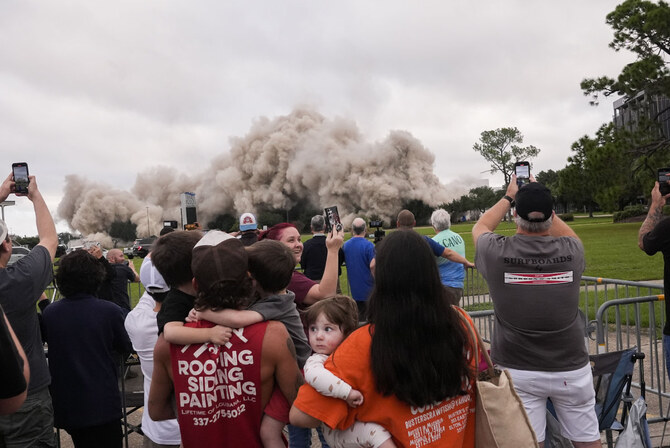 BATON ROUGE, Louisiana: An abandoned, 22-story building in Lake Charles, Louisiana — once an icon in the city that became a symbol of destruction from hurricanes Laura and Delta — was imploded Saturday after sitting vacant for nearly four years.