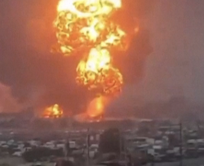 Images and videos shared on social media showed large balls of fire and smoke at the targeted oil storage facilities at Hodeidah Port and other locations.