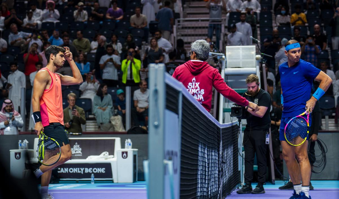 RIYADH: In a historic clash between two of Spain’s tennis icons, rising star Carlos Alcaraz overcame his childhood idol Rafael Nadal with a 6-3, 6-4 victory on the second day of the Six Kings Slam in Riyadh.