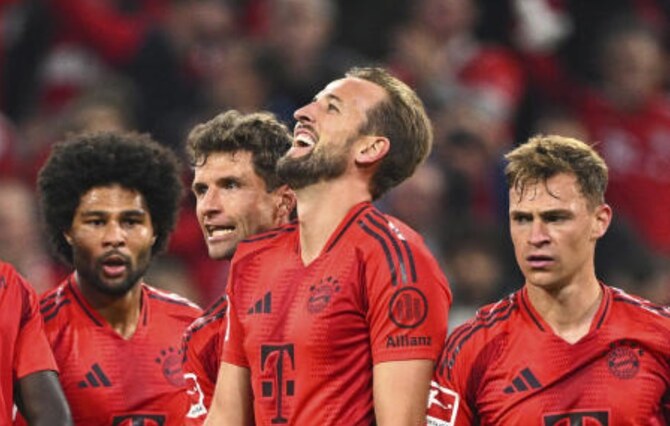 The England captain pounced on a loose ball on the 80-minute mark to bring up his third, chalking up his sixth hat-trick in Bayern colors and his 57th goal for the German giants in all competitions.