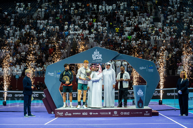 RIYADH: World No. 1 Jannik Sinner triumphed in a hard-fought battle against World No. 2 Carlos Alcaraz in a gripping final at the Six Kings Slam in Riyadh, winning 6-7(5), 6-3, 6-3 to claim the $6 million prize.