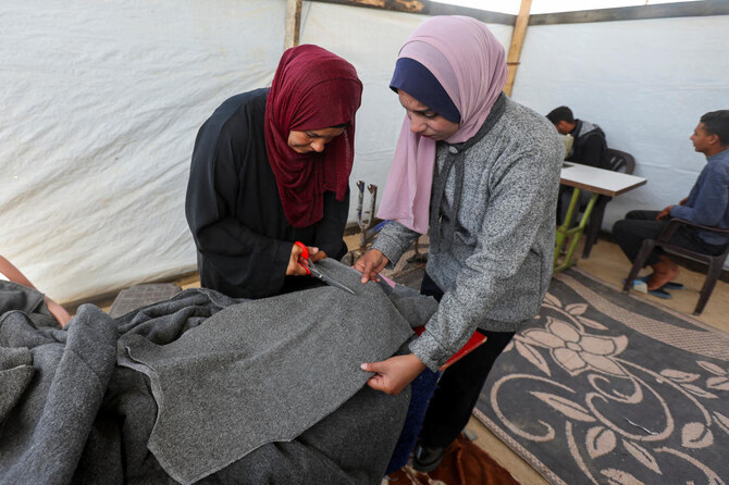 KHAN YOUNIS: As Gaza braces for a cold, wet winter, displaced Palestinians living in tents and makeshift shelters by the sea are sewing clothes from blankets in a desperate effort to stay warm.