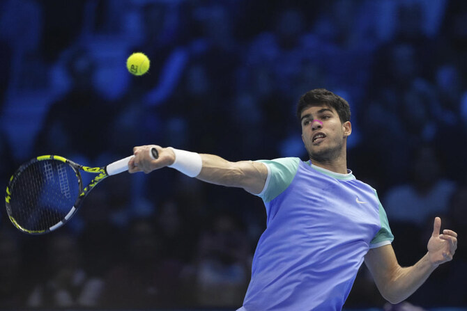 Alcaraz winning in straight sets means that Ruud will reach the semifinals if he beats two-time Finals champion Alexander Zverev in the day’s late match.