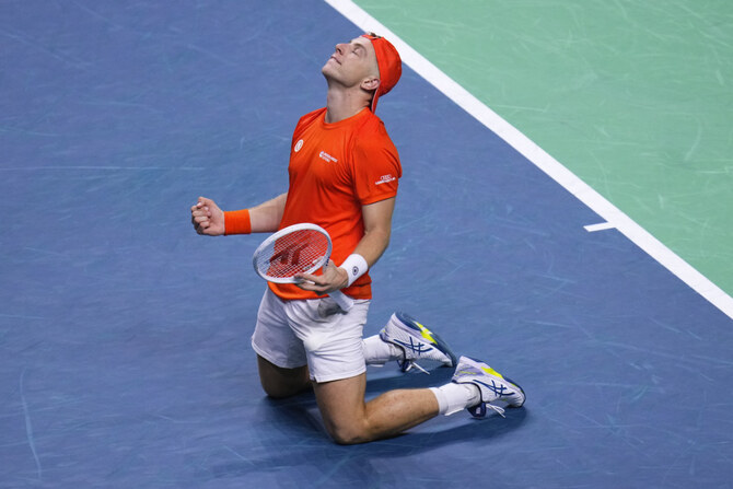 Griekspoor finished the tie with an ace, his 25th of the night, and fell to his knees in celebration as orange-clad Dutch fans celebrated with glee.
