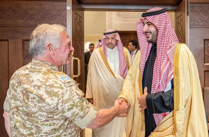 RIYADH: Prince Khalid bin Salman, the Saudi minister of defense, met King Abdullah II of Jordan at Al-Husseiniya Palace in Amman on Sunday.