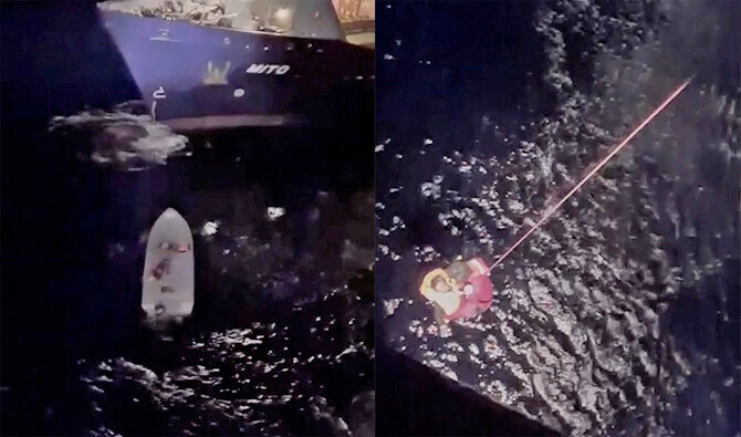 The collage of images shows Greek Navy conducting a rescue operation after a migrant boat capsized off the island of Gavdos, Greece, December 14, 2024, in this still image obtained from a video. (Hellenic Navy via REUTER)