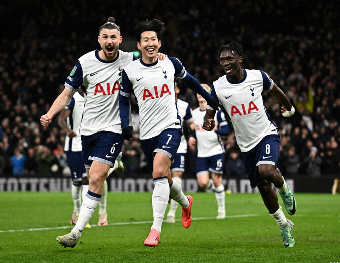 Son scores direct from a corner as Tottenham beats Man United 4-3 in the English League Cup
