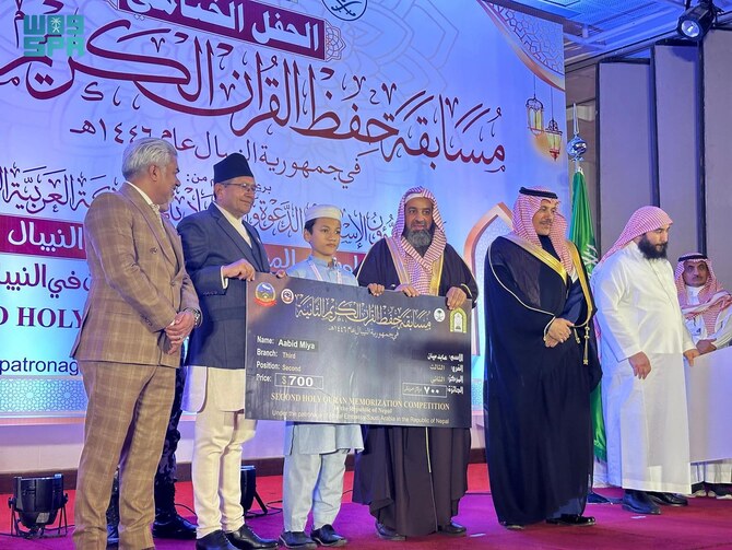 RIYADH: Saudi Arabia’s Ministry of Islamic Affairs recently honored winners of a Qur’an memorization competition in Nepal, involving more than 750 contestants and with 18 winners in four categories for boys and girls.