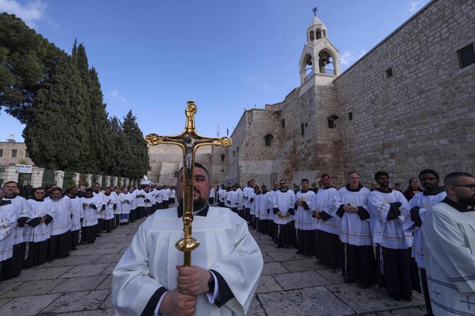 BETHLEHEM: Palestinian security forces deployed around the Church of the Nativity in the West Bank holy city of Bethlehem on Tuesday, as the faithful prepared for another solemn Christmas overshadowed by the war in Gaza.